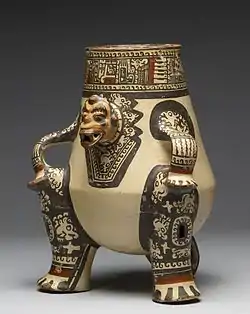 The treasurer on Dávila's expedition, Andrés de Cereceda, reported a population of 6,063 inhabitants under Nicoya's leadership, almost five and a half times larger than the next largest settlement visited by the Spanish along the Pacific coast in the early 1520s.[4] According to 16th-century chronicler Gonzalo Fernández de Oviedo y Valdés[5] who visited Nicoya in 1529, the layout of the indigenous community was similar to that of the larger settlements in nearby Nicaragua and included a central plaza with temples, a low pyramidal mound used for human sacrifice, and specialized plazas for markets and chiefs' residences.