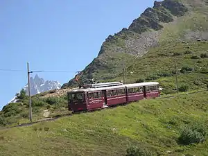 Gare du Nid d'Aigle (French: Eagle's Nest Station) is the terminus of the Tramway du Mont Blanc (TMB) from Saint-Gervais-les-Bains on the slopes of the Mont Blanc.