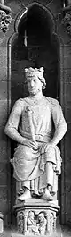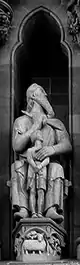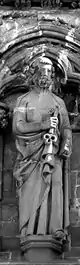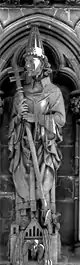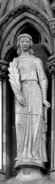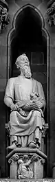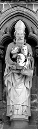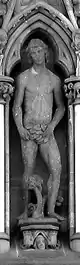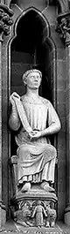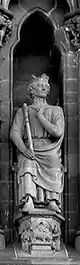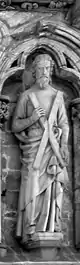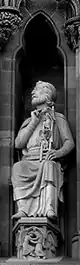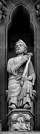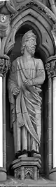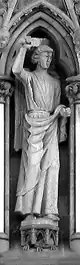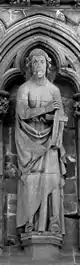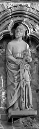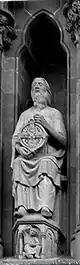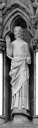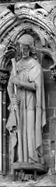 - ↑ This is the iconographic detail by which he may be identified on numerous sculptures including the thirteenth-century sculpture at the Musée de Cluny and in the nineteenth-century figure in the portal of Nôtre Dame de Paris.