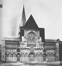 Since there was limited documentation on the original west front layout, there was an extensive discussion of what was appropriate for the restoration in 1903. The cathedral architect, Christian Christie was uncertain whether the Gothic style or a practical, functional structure was preferable. In his sketch of 1903 the west face did not include a rose window, for which he was subjected to criticism.