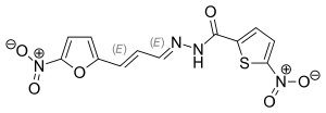 • [O-][N+](=O)c1ccc(o1)/C=C/C=N/NC(=O)c2ccc(s2)[N+](=O)[O-]