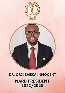 Nigerian Association of Resident Doctors (NARD) formerly known as National Association of Resident Doctors of Nigeria is the parent body of all Association of Resident Doctors (ARD)s of Nigeria. It is an affiliate of the Nigerian Medical Association (NMA).[1] It has 76 branches domiciled mainly in Federally and State-owned Teaching Hospitals, Specialist Hospitals and Public health institutions of the Federal Capital Territory.[2] There is a general perception of NARD as the foot soldiers of the NMA.[3] It represents about 40% of Nigerian doctors.[4]