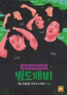 Night Goblin (Korean: 밤도깨비) is a South Korean television program starring Lee Soo-geun, Jeong Hyeong-don, Park Sung-kwang, Lee Hong-gi and Kim Jong-hyeon. It is a reality show where in each episode, the cast will attempt to be the first in line to enter various popular places for food or recreation throughout South Korea.