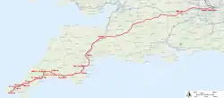 Night Riviera route map | |||||||||||||||||||||||||||||||||||||||||||||||||||||||||||||||||||||||||||||||||||||||||||||||||||||||||||||||||||||||||||||||||||||