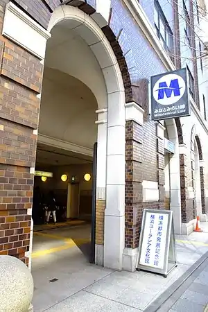 Nihon-ōdōri Station (日本大通り駅, Nihon-ōdōri-eki) is an underground railway station on the Minatomirai Line in Naka-ku, Yokohama, Kanagawa Prefecture, Japan, operated by the third-sector railway operating company Yokohama Minatomirai Railway Company. Its official name is Nihon-ōdōri (Kenchō-Ōsanbashi) Station (日本大通り(県庁・大さん橋)駅, Nihon-ōdōri (Kenchō-Ōsanbashi)-eki), including the sub-name in parentheses.