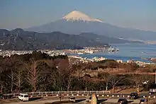 A plateau at the centre of Shizuoka city, with a maximum altitude of 308 metres (1,010 ft), Nihondaira is famous for its views of Mount Fuji, the Izu Peninsula, the Japanese Southern Alps, Shimizu Port, and Suruga Bay. It was selected by the Tokyo Nichi Nichi Shimbun and Osaka Mainichi Shimbun[1] as one of the top 100 Landscapes of Japan in 1927 and a National Place of Scenic Beauty of Japan in 1954. [2]