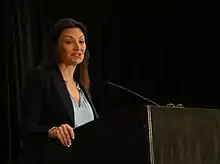 Later in 2020, Fried partly delivered the keynote address at the 2020 Democratic National Convention, joining 16 other speakers designated as "rising stars".[38][39] Fried critiqued President Donald Trump's response to the COVID-19 pandemic, and reiterated the Democratic Party's commitment to fighting climate change.[39][40]