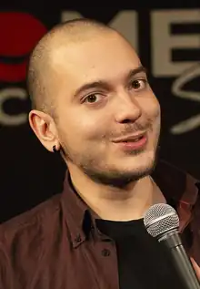 ![]() Nikolaos Tsitiridis on the stage of Comedy Club Sofia, 2018 | |