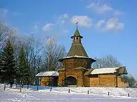 The extant buildings of the monastery were constructed at the close of the Muscovite period. The five-domed cathedral of St. Nicholas was built in 1670–74, preceded by the Assumption church (1664–67), to which it is joined by a gallery. Several decades later, the walls and towers were built of timber; the best preserved of these towers was transported by the Soviets to Kolomenskoe, Moscow, where it may be seen to this day.