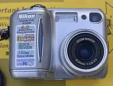 The Nikon Coolpix 4300 is a digital camera that was made by Nikon. It was first released on October 1, 2002, and is no longer in production. At 4.0 effective megapixels, it is capable of delivering 2,272 × 1,704 pixel images. An included lens cap protects its Nikkor 3× optical Zoom lens, with a focal length of 8 to 24 mm (equivalent of a field of view in 38 to 114 mm lens), as well as an aperture of f/2.8–4.9 and shutter speed of 8–1/1,000 sec. It is capable of ISO equivalents of 100, 200, and 400.