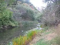 The abandoned Sunol Aqueduct runs through the canyon. The aqueduct, built in the 1920s, formerly provided half the water supply to San Francisco before it was replaced by the Hetch Hetchy Aqueduct.