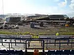 With Cardiff struggling financially and owing several payments to their landlords the City of Cardiff Council, the club was forced to close three stands in the ground to save on policing costs during matches. The closure remained in place for a year until Rick Wright acquired control of the club and invested heavily in updating the ground.[59] Improvements included installing 2,100 seats and extending the roof in the Grandstand, replacing terracing in the Popular Bank with 5,330 seats and refurbishing the Grange End and the Canton Stand, which added a further 1,761 seats.[49][60] Wright decided to sell his stake in the club in 1993 and a feasibility study of Ninian Park carried out by Tarmac Group on behalf of a prospective buyer estimated that the redevelopment of the ground would cost an estimated £4.6 million.[61] The increasingly dilapidated nature of the ground gained national attention following Cardiff's victory over Leeds United in the FA Cup in January 2002 due to crowd trouble after the match. Jeff Cooksley, Chief Superintendent of South Wales Police, commented that, although no objection was made to using the ground, Ninian Park was a "very old ground, [...] and is very poorly designed compared with modern standards."[62]