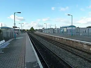 From December 2015 a limited number of mainline trains (Maesteg Line services) call at Ninian Park, rejoining the mainline at Leckwith Junction to the west of the station.[4][5] This route is also occasionally used as a diversionary route for GWR services. Additionally, Vale of Glamorgan Line trains terminate here when Cardiff Central is unavailable due to engineering works.