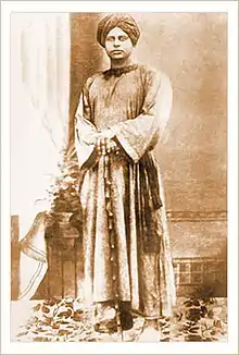 Niranjanananda (Senior), born as Nitya Niranjan Ghosh, usually called by the shortened name of Niranjan, was one of the foremost monks of Ramakrishna Mission and was one of the direct monastic disciples of Ramakrishna. Niranjanananda was one of those few disciples, whom Ramakrishna termed as "Nityasiddhas" or "Ishwarakotis" – that is, souls who are ever perfect.[1] [Niranjanananda is termed Senior since there was another swami, Niranjanananda (Junior) also known as Pandalai Maharaj, later in the Ramakrishna Mission who died in 1972].[2] Even though his tenure with the newly formed Ramakrishna Mission was short-lived owing to his early death, he left an indelible mark in spiritual and philanthropic activities. He had a majestic appearance, being tall with broad shoulders and strong physique.
