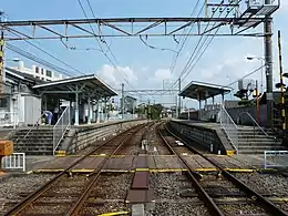 The station consists of two opposed side platforms connected by a level crossing.