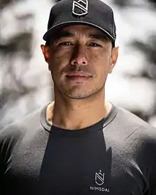 Nirmal Purja (known as Nims or Nimsdai[13]) MBE (Nepali: निर्मल पुर्जा; born 25 July 1983[1]) is a Nepal-born naturalised British[4] mountaineer. Prior to taking on a career in mountaineering, he served in the British Army with the Brigade of Gurkhas followed by the Special Boat Service (SBS), the special forces unit of the Royal Navy.[1][14] Purja is notable for having climbed all 14 eight-thousanders (peaks above 8,000 metres or 26,000 feet) in a time of six months and six days with the aid of bottled oxygen.[15] This was a record at the time of climbing, although it was broken in 2023 by Kristin Harila and Tenjen Sherpa, who summitted all 14 eight-thousanders in 92 days. Purja was the first person to climb Mount Everest, Lhotse and Makalu within 48 hours. In 2021, Purja, along with a team of nine other Nepalese climbers, completed the first winter ascent of K2.[16][17][18]