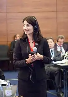 ![]() Pillai moderating a discussion at an ITU conference. | |