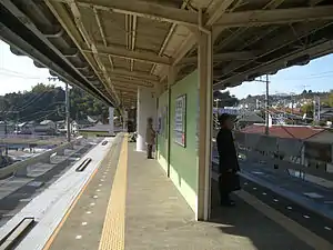 Nishi-Kamakura Station is an elevated station with a single island platform serving two tracks. The station is unattended.
