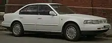 Nissan Australia began importing the J30 series for a May 1990 release to replace the locally assembled Nissan Skyline (R31) sedan and station wagon.[10] Powertrain comprised the 3.0-liter VG30E V6 rated at 122 kW (164 hp) and a four-speed automatic. Nissan made the Maxima available in two equipment grades, the M and Ti.[11] The M featured air conditioning, alloy wheels, central locking, cruise control, power steering, and power windows. The Ti added a rear spoiler, climate control air conditioning, anti-lock brakes, electric seats and a PIN touch-pad locking system. The M-based LE of late 1991 featured a CD player and sunroof.[11] There was also a leather/sunroof pack optional on Ti.[10] Nissan Australia released a facelift in January 1993 that included a new grille insert, revised tail lamps, wheels and cabin trim.[12] A driver airbag was now fitted to the Ti, and made optional on the new Executive trim that replaced the M.[10] The J30 in Australia was replaced in February 1995 by a new Maxima based on the Nissan Cefiro (A32).[10]
