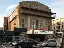 In September 2016, Nitehawk announced plans to open a second location, Nitehawk Prospect Park, in Park Slope.[10] It is located in an historic Art Deco movie theater adjacent to Prospect Park that operated as the Sanders Theater from 1928 to 1978,[10][11][12] and as the Pavilion Theater from 1996 to 2016.[10][13] Viragh and the building's owner had discussed converting the theater into a Nitehawk in 2011, but discussions fell through following the opening of Nitehawk Williamsburg.[14] In 2015, the New York City Landmarks Preservation Commission approved a plan that would have partially converted the building into condominiums and shrunk the floor area of the theater.[11][15] However, an investment firm ultimately purchased the building for $28 million[15] and granted a long-term lease to Nitehawk.[10]