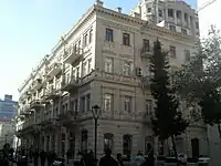 In 1859, there was a strong earthquake in Shamakhi, which resulted in the demolition of the Shamakhi Governorate and the creation of the Baku Governorate in the center of Baku.[3][4] After becoming the governorate, it was necessary for the city to undertake ambitious construction projects.[5] In the first years after the order of 1859 was signed, the population of Baku began to rise. New caravanserais were being constructed along the northern part of fortress walls, each of which occupied a whole quarter, trading rows and stores. Subsequently, this part of the city became the central trading area and it was necessary to develop a cohesive construction plan. It was entrusted to Gasim bey Hajibababeyov and a group of engineers and architects from Saint Petersburg.[6] According to the group, construction of new highways, beginning from Icheri Sheher fortress in all directions, was the focus of their urban planning.[7] Their design philosophy is reflected in the first governorate urban plan of Baku, created in 1864.[8] Initially Nizami Street was called “Torgovaya Street”, because of its status as a trade center. Later, in 1879 it was officially renamed “Gubernskaya Street”, but citizens still called it “Torgovaya”.[9] The street began on Mariinskaya Street (later Korganov Street, now Rasul Rza Street), where reputable multi-storeyed houses of wealthy people were located and reached to so called “Black City” of Baku, where there were oil wells and other industrial developments. The late 19th century was characterized by rapid economic development of the city and the second massive influx of people from other governorates of the Russian Empire, the reason of which was the incorporation of new oil wells in the Absheron Peninsula. Marine infrastructure was also developed and the general plan of fortress vorstadt and the marine port was significantly expanded, and the city eventually became one of Southern Russia's most significant trading hubs. The rapid economic growth of Baku was followed by the arrival of affluent industrialists who began constructing new buildings. A great number of buildings on this storied street were constructed by oil magnates such as Musa Naghiyev, Shamsi Asadullayev and Murtuza Mukhtarov, and designed by prominent architects such as N.A.von der Nonne, M.Gafar Ismayilov, A.Hajibababeyov, K.B.Surkevich, J.V.Goslavski, Józef Plośko, Zivar bey Ahmadbeyov, E.Edel and G.Termikelov.[10][11]