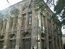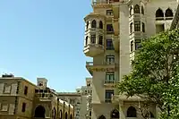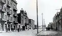 In 1896, a three-storeyed apartment house (Nizami 79) was built on the corner of Prachechnaya Street (later Gogol, now Mardanov Qardashlari Street) by architect I.V.Edel, by the order of oil magnate Murtuza Mukhtarov and in 1910, a new storey was added to it by architect Jozef Ploshko and it obtained a half-circled concept of a façade and a circled concept of a cupola.[13] Millionaire Haji Rajabli's house, now “Vatan” cinema (Nizami 75,77) was constructed on the left side of Torgovaya, between Mariinskaya and Prachechnaya Streets. On the opposite side was a building possessed by Mirza Taghiyev, a merchant from Shamakhi, where was located a popular shop of German confectioner Zeitz.[14]