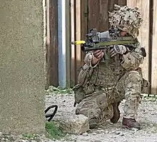 In 2003 the squadron deployed as a field squadron to Ali Al Salem airbase, Kuwait, in support of OP TELIC. On return they continued with Rapier commitments and deployed to the Falklands in 2004/2005. From 2006 the squadron had a ground defence role and served in Afghanistan and Iraq.[8] In October 2014, the squadron provided the last troops on the ground in the airfield defence role at Camp Bastion. They withdrew back to Honington in the same month with some of the gunners on the squadron being flown out by the last wave of helicopters to leave the base,[10] with the last of the squadron returning to the United Kingdom in November 2014.[11]