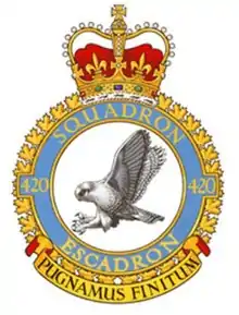 No. 420 "City of London" Squadron RCAF was a squadron of the Royal Canadian Air Force (RCAF) (and subsequently Canadian Forces) which existed from late December 1941 forwards. The Squadron's nickname was "Snowy Owl". Their motto was Pugnamus Finitum, Latin for We Fight To The Finish. No. 420 Squadron is no longer active.