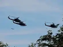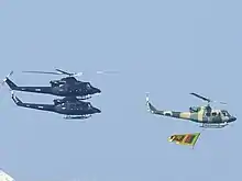 The No. 4 Helicopter Flight was formed in 1965 under the command of Squadron Leader M. A. De Soysa, flying Westland Sikorsky S 51 Dragonflys. No. 4 Helicopter Squadron was established on January 15, 1971 with Bell 206 Jet Ranger helicopters. With role of VIP transport, reconnaissance, cargo transport, air/sea and jungle rescue. In 1983 the squadron permanently positioned several Bell 212 and Bell Jet Ranger helicopters at SLAF Palaly, in support of the Army in Jaffna. These were used both for troop transport and ground attack.[2] In 1987 the Squadron was upgraded to an Air Wing as the No. 4 Helicopter Wing.[3] They played a major role during the Vadamarachchi Operation in 1987, deploying Commandos behind enemy lines. In 1990 a helicopter of the squadron took part in the daring Operation Eagle, in which it flew into the besieged Jaffna Fort re-supply and casualty evacuation. The following year the squadron provided air cover for the besieged Silawaturai camp for 72 hours continuously and were able to save the camp from being overrun by the LTTE, who had surrounded the camp in large numbers. During the siege of Elephant Pass aircraft of the squadron provided extensive air cover and airlifted the casualties. In 1993 during the Battle of Pooneryn the squadron flew in reinforcement and later evacuated Army and Navy personnel under heavy enemy fire.[1]