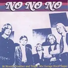 No No No is a compilation of garage rock recordings from the 1960s issued by Arf! Arf! Records, and is available exclusively on compact disc.[1][2][3][4] In keeping with the sub-heading that reads "28 Moody, Somber and Tragic '60s Garage Rock Sagas", the set features mostly somber and downcast examples of the genre, many of them ballads in contrast to Arf! Arf!'s subsequently released companion piece, Yeah Yeah Yeah, which instead features upbeat, driving, and hard-rocking songs.[1][5] There are no liner notes included, but the cover artwork nonetheless displays photographs of the labels of the original singles from which the tracks were taken.[2][6]