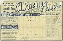 On 24 September 1889, Arthur Martin & Co auctioned 258 town allotments under the name Davenport Township. These blocks were located on south west side of Nobby railway station.[13][14]