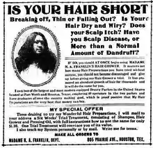 - ↑ "Madame N.A. Frankling MFG. Co. Big Business Builders; Parlors Dot Both Sections". The Houston Informer. 30 June 1923. Retrieved 11 February 2016.