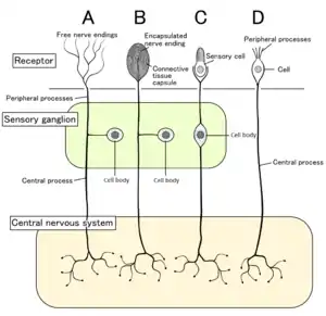 6. 1 2 3 Woolf CJ, Ma Q (August 2007). "Nociceptors—noxious stimulus detectors". Neuron. 55 (3): 353–64. doi:10.1016/j.neuron.2007.07.016. PMID 17678850. S2CID 13576368.