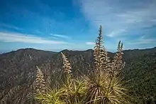 This species is endemic to the Sierra de la Laguna, a mountain range in the Cape region of Baja California Sur, Mexico.[5] It grows on granitic outcrops at elevations from 1,000 m (3,300 ft) to 1,800 metres (5,900 ft), often in the highest reaches of the mountains. It is predominantly found on the steep slopes and cliffs of the local oak and pine forests, growing in association with Quercus tuberculata, Q. devia, Q. arizonica and Arbutus peninsularis.[3] It is also found growing with the rare Dudleya rigida.[6] Brandegee described this species as "the most striking part of the vegetation" amongst the oaks and pines.[4]