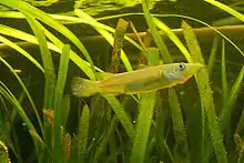 Nomorhamphus is a southeast Asian genus of viviparous halfbeaks from streams, rivers and lakes in Sulawesi (Indonesia) and the Philippines. They are all viviparous, producing small clutches of around a dozen fry about 10 to 15 mm long at birth. Females are generally larger than the males. In the largest species, such as Nomorhamphus liemi, the females typically reach about 10 cm (3.9 in) in length, whereas the males reach about 6–7 cm (2.4–2.8 in) in length. Males are also more brightly coloured than the females (often having red, black, or blue patches on their fins). Compared with many other halfbeaks, the lower mandible, or beak, is relatively short, on females in particular barely protruding beyond the length of the upper mandible. The males of some species (e.g., N. ebrardtii) have short, straight beaks, but those of others (e.g., N. liemi) have short beaks that curve downwards forming a shape often compared to a goatee beard by aquarists. N. aenigma is unique within Nomorhamphus because of its lack of lower jaw elongation.[1]