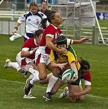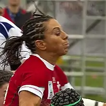 Non Evans MBE (born 20 June 1974)[1] is a Welsh multi-discipline sportswoman and TV personality who has competed internationally in rugby union, rugby sevens, touch rugby, judo, weightlifting and freestyle wrestling.[2]