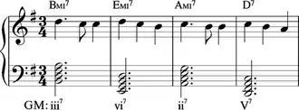 As with dominant seventh chords, nondominant seventh chords usually progress according to the circle progression, thus III+7