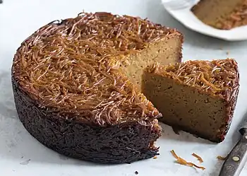 Noodle kugel (לאָקשן קוגל lokshen kugel, pronounced [ˈkʊɡl̩]), also known as lokshen kugel or kigel, is an Ashkenazi Jewish casserole that is traditionally served as a side dish and popular variety of kugel made with lokshen noodles and either a variety of dairy or pareve ingredients, often served on Shabbat and Jewish holidays.