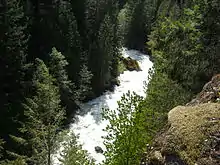 The Middle Fork Nooksack River, about 20 miles (32 km) long, originates on the southern slopes of Mount Baker near Baker Pass.[7] It flows generally northwest between Mount Baker and Twin Sisters, and drains into the North Fork opposite Welcome, about 4.5 km (2.8 mi) northeast of the confluence between the North and South Forks.