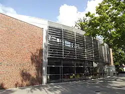 Nordhorn has mostly kept itself from being spoiled by the few individual building styles of the postwar years. The town's appearance has kept the appealing red brickwork that has long been a tradition in northern Germany and in the neighbouring Netherlands. It is even seen in modern buildings. The new district building, for instance, combines the local building materials of brick and sandstone with glass, concrete and copper.
