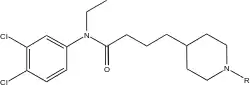 | N-(3,4-Dichloro-phenyl)-N-ethyl-4-(1-methyl-piperidin-4-yl)-butyramide | 0.80 | 0.0069 | 0.012 |