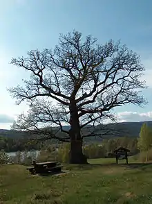 Noresund is perhaps best known for with association with the Krødsherad Rectory Natural Monument (Krødsherad prestegård naturminne). This is the site of the oak tree known as The Old Master. This tree was made famous by the poetry of clergyman and poet Jørgen Moe. In 1853 Moe became a resident chaplain in Sigdal and Krødsherad, a position he held for ten years. At Noresund he found inspiration for one of his most famous poems, "The Old Master" (den gamle Mester).[1][2][3]