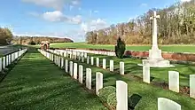It contains the remains of 549 soldiers of the British Commonwealth, mainly those of the United Kingdom. Of the 326 identified casualties are 318 Britons, six Australians, a Canadian, and an Indian soldier.[1] Many of the soldiers buried in the cemetery were those of the 21st Division who were killed or died of wounds during the opening days of the Battle of the Somme.[2]