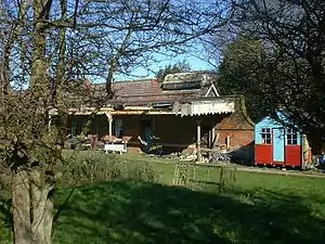 Mundesley railway station was provided with wide platforms and substantial buildings and a yard for the anticipated holiday traffic. Today nothing remains of the station site, which has been redeveloped as a housing estate.[7][8][9]