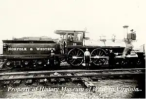 Norfolk and Western Class J or the First J Class is a Class of 4-4-0 steam locomotives of the Norfolk and Western Railroad, in the United States. They were built from 1879 at the Baldwin Locomotive Works, in Pennsylvania, and they were retired in 1900 and scrapped by 1901 and 1904.