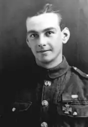 For most conspicuous bravery and devotion to duty near Ingoyghen on the 25th October, 1918, when his battalion was held up and suffered heavy casualties from enemy machine guns. On his own initiative he rushed forward and engaged the enemy single-handed, killing 20 opposing soldiers and capturing two guns. Later, when his company was checked by another enemy strong point, he again rushed forward alone and put the enemy to flight.