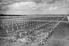 On June 6, 1944, the 607th Quartermaster Graves Registration Company of the U.S. First Army established the temporary cemetery, the first American cemetery on French soil in World War II.[3] After the war, the present-day cemetery was established a short distance to the east of the original site.