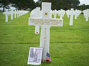 Among the burials at the cemetery are three recipients of the Medal of Honor, including Theodore Roosevelt Jr., son of President Theodore Roosevelt. After the creation of the cemetery, another son of President Roosevelt, Quentin, who had been killed in World War I, was exhumed and reburied next to his brother Theodore Jr.
