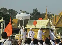 Chakrapong was bestowed the title of Sdech Krom Khun in February 1994, which translates as "The Great Prince".[37] Chakrapong was given the royal title of Samdech Preah Mohessara in August 2004 by Sihanouk shortly before the latter handed over the throne to Sihamoni.[38] Chakrapong was appointed as a privy councilor of the Supreme Privy Council of Cambodia with the rank equivalent to Deputy Prime Minister.[26] He also established a foundation named after his older brother, the Norodom Racvivong Foundation, to support charitable and humanitarian initiatives for the poor.[39] In 2013, Prince Chakrapong was appointed member of the Constitutional Council, as one of the three members representing the King (out of 9 members).