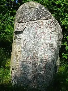 Styrbjôrn had the stone raised in memory of Sigsteinn, his father, Holmsteinn's brother.[3]